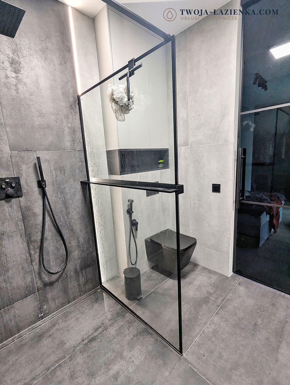 ✔️ Przestronna strefa prysznicowa typu walk-in z deszczownicą